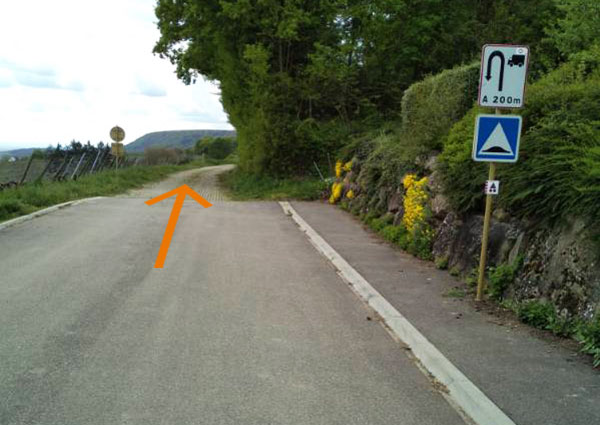 A Husseren-les-Châteaux, aller au bout de la rue de l'Abbaye de Marbach, puis continuer sur le sentier viticole.